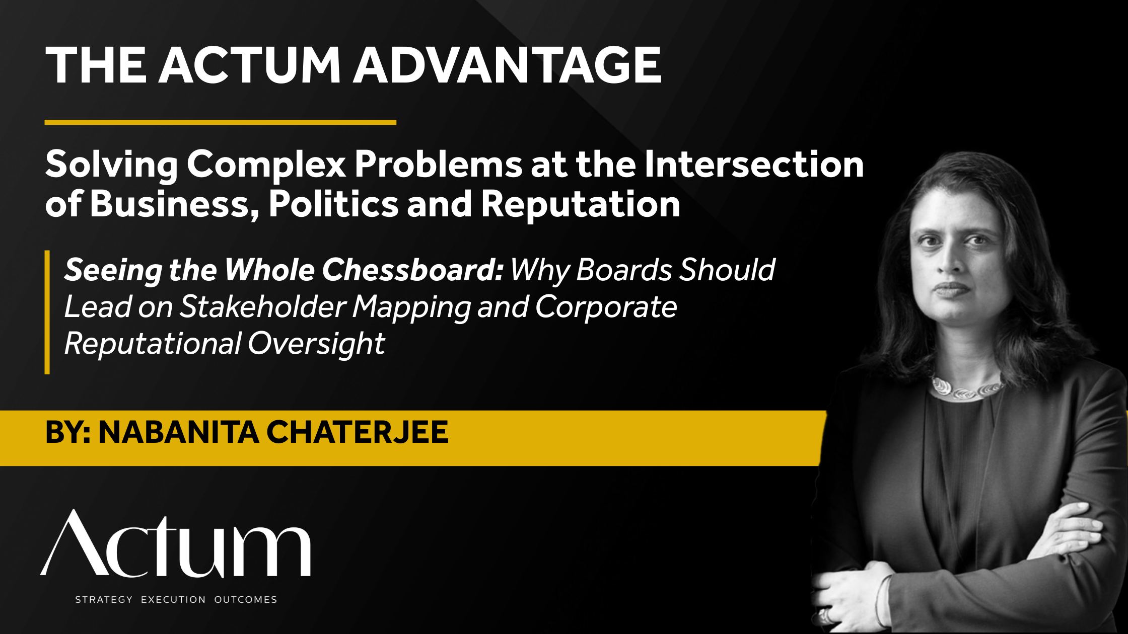 Actum Advantage is a thought leadership series from Actum’s Corporate & Board Advisory Group, examining how C-suites and Boards navigate the intersection of business, politics, litigation, and reputation in a multi-stakeholder environment. Actum’s Corporate & Board Advisory Group helps leaders protect enterprise value and achieve outcomes in moments of high scrutiny.
